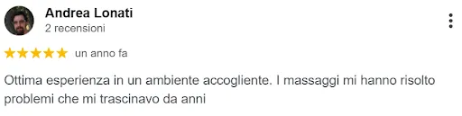 “Ottima esperienza in un ambiente accogliente. I massaggi mi hanno risolto problemi che mi trascinavo da anni”
