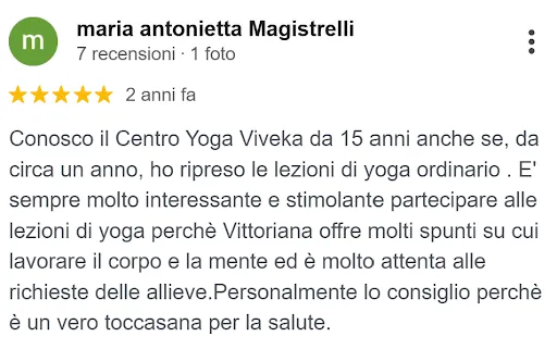 “È sempre molto interessante e stimolante partecipare alle lezioni di yoga perché Vittoriana offre molti spunti su cui lavorare il corpo e la mente”